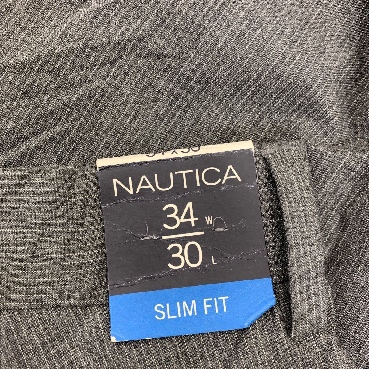 NAUTICA スラックスパンツ W34 ノーティカ グレー ストライプ スリムフィット 古着卸 アメリカ仕入 2311-768
