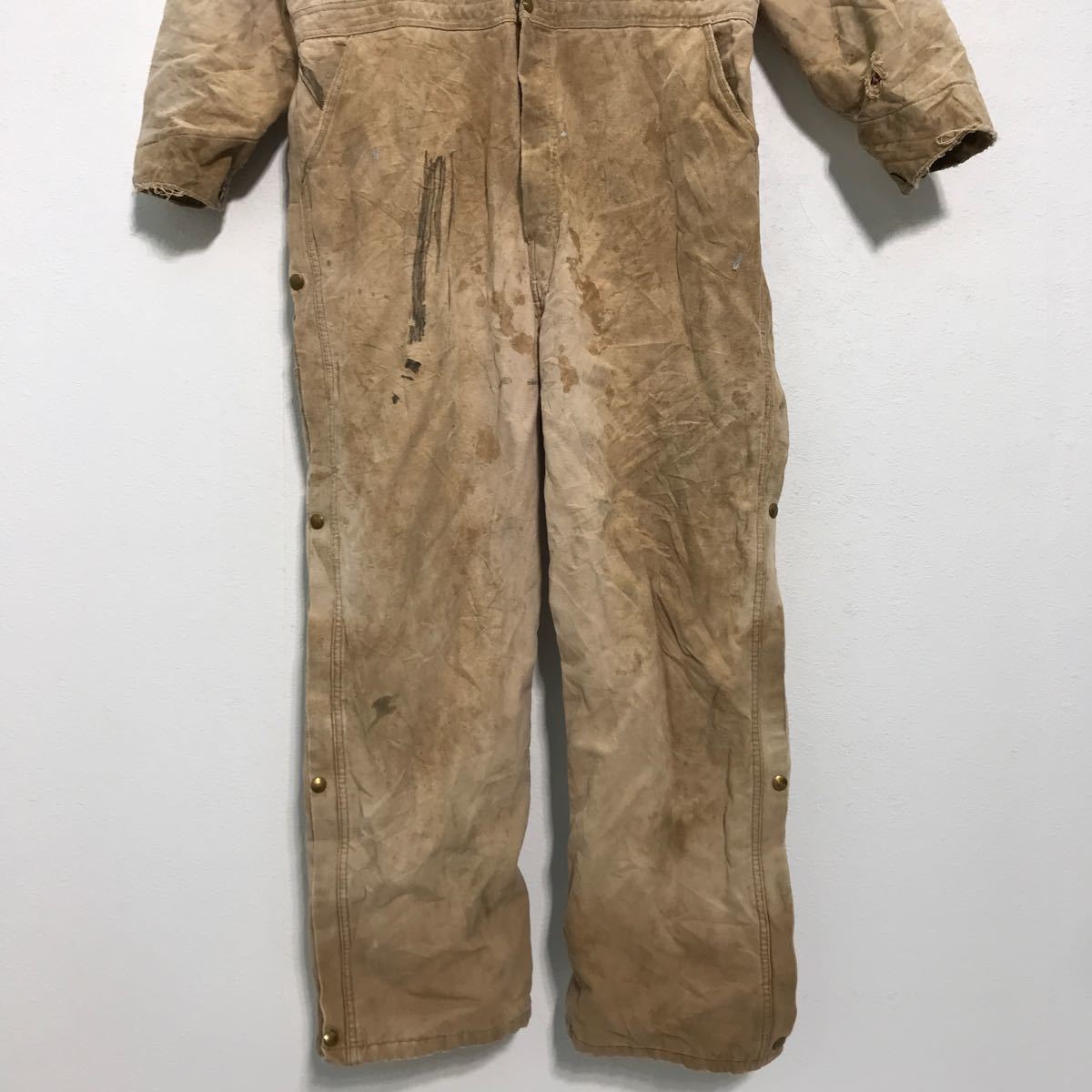carhartt ダック 中綿 長袖つなぎ W44 カーハート ワークウェア 作業服 ベージュ 古着卸 アメリカ仕入 a512-5171