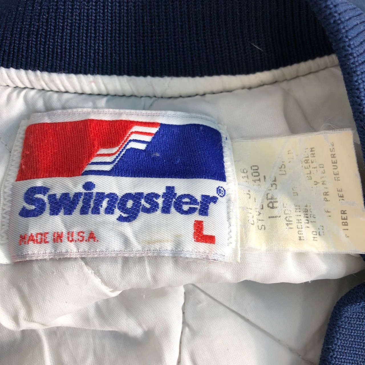 Swingster ジャケット L ネイビー ホワイト レッド スウィングスター アメリカ製 ブルゾン 刺繍 古着卸 アメリカ仕入 a601-5490