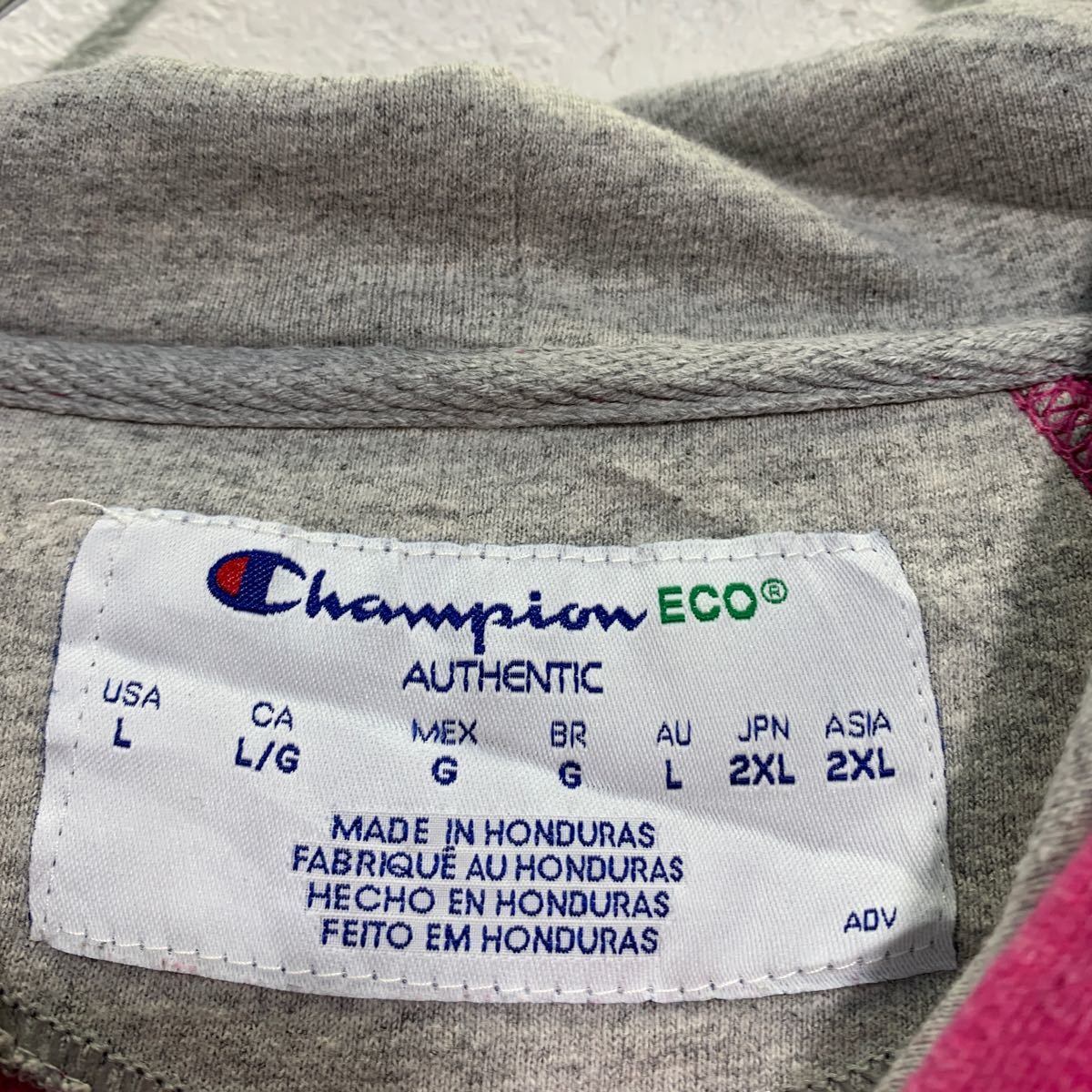 champion ロゴ スウェット パーカー L ピンク グレー チャンピオン 裏起毛 フーディー ポケット レディース 古着卸 アメリカ仕入 a601-6113