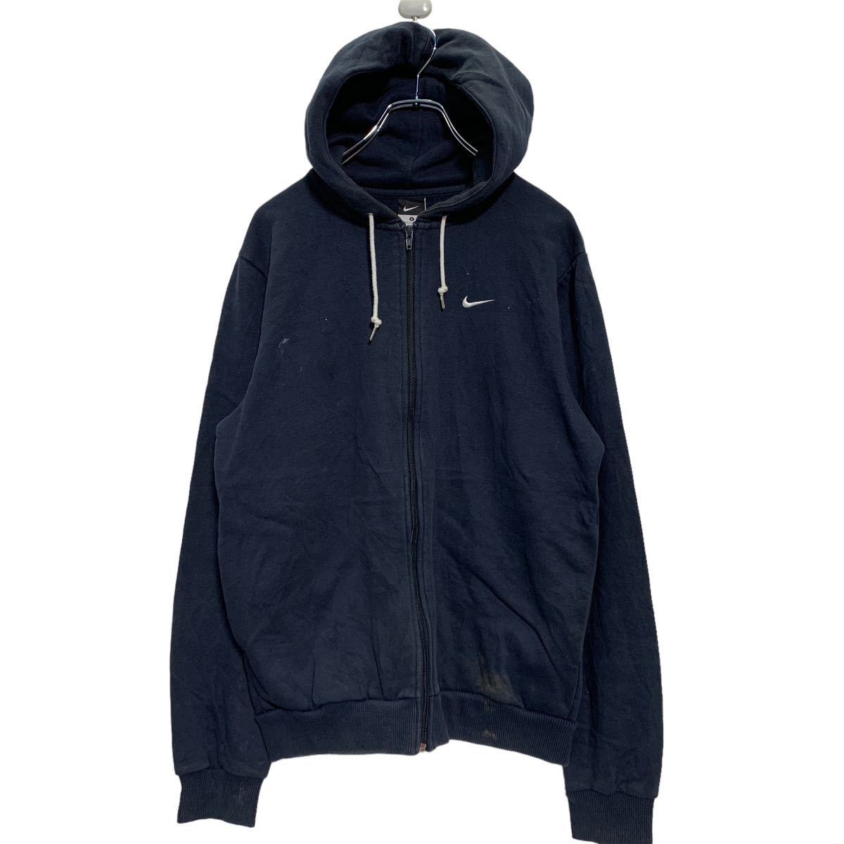 NIKE ジップアップ ロゴ スウェット パーカー S ネイビー ナイキ 裏起毛 刺繍 古着卸 アメリカ仕入 a601-6601