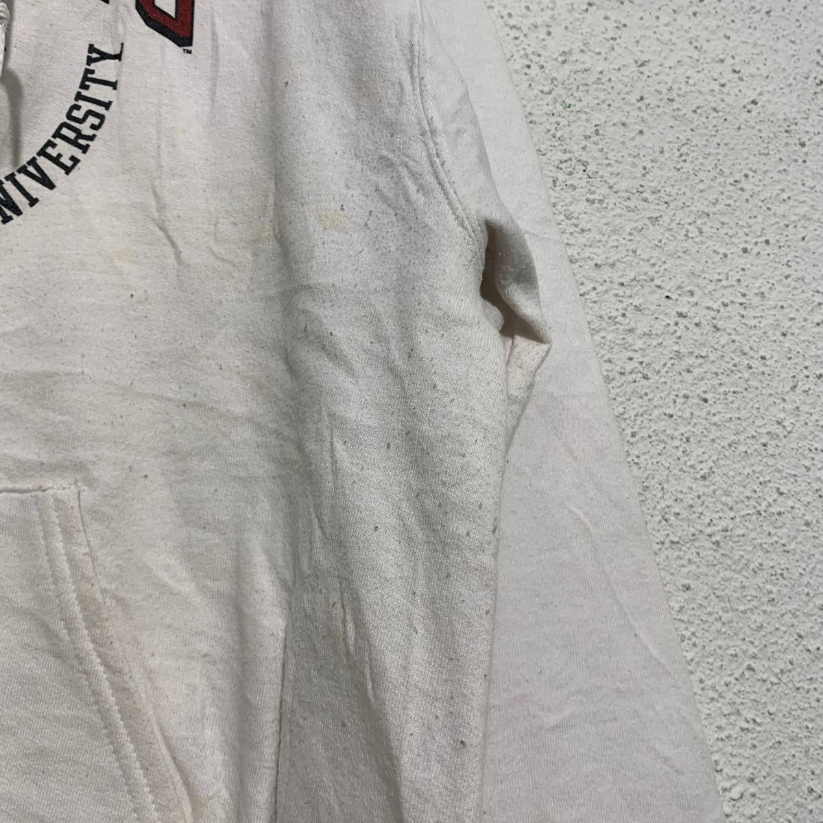 Champion プリント スウェット パーカー S ホワイト チャンピオン 裏起毛 カレッジ WILDCATS 古着卸 アメリカ仕入 a601-6643