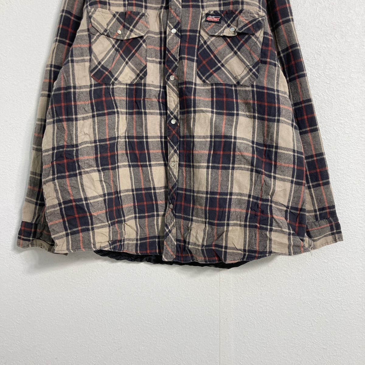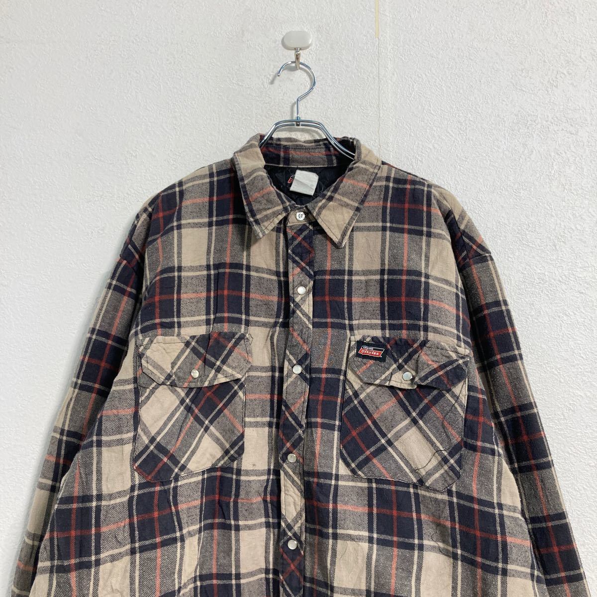 Dickies シャツ ジャケット 2XL チェック ベージュ ネイビー ディッキーズ ビッグサイズ 裏キルティング 古着卸 アメリカ仕入 a602-5040