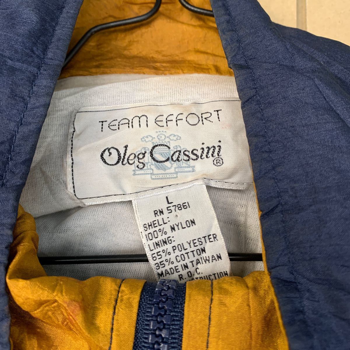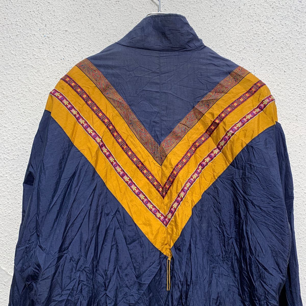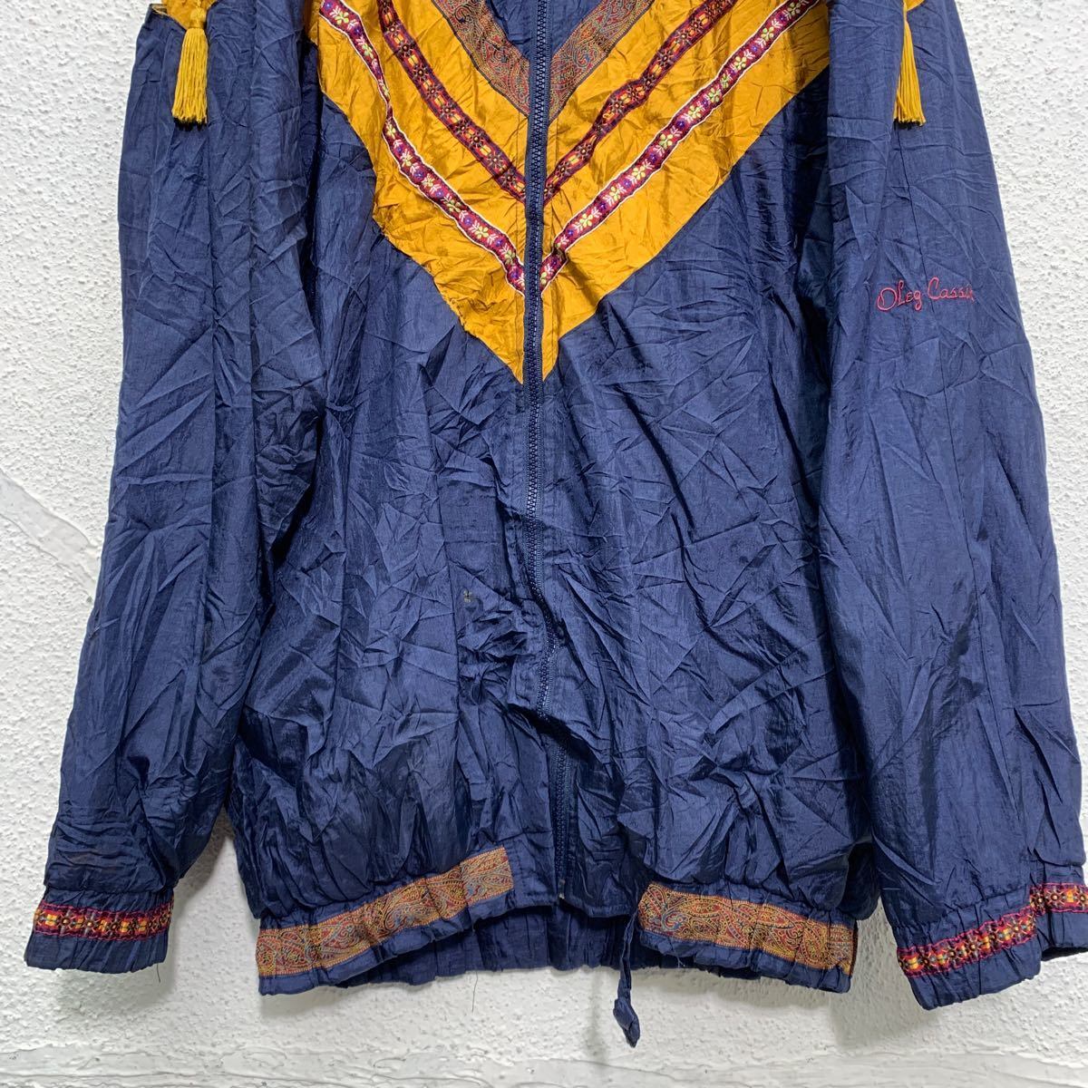 Oleg Cassini ジップアップ ナイロンジャケット L ネイビー イエロー フリンジ 民族 ボヘミアン 古着卸 アメリカ仕入 a602-5250