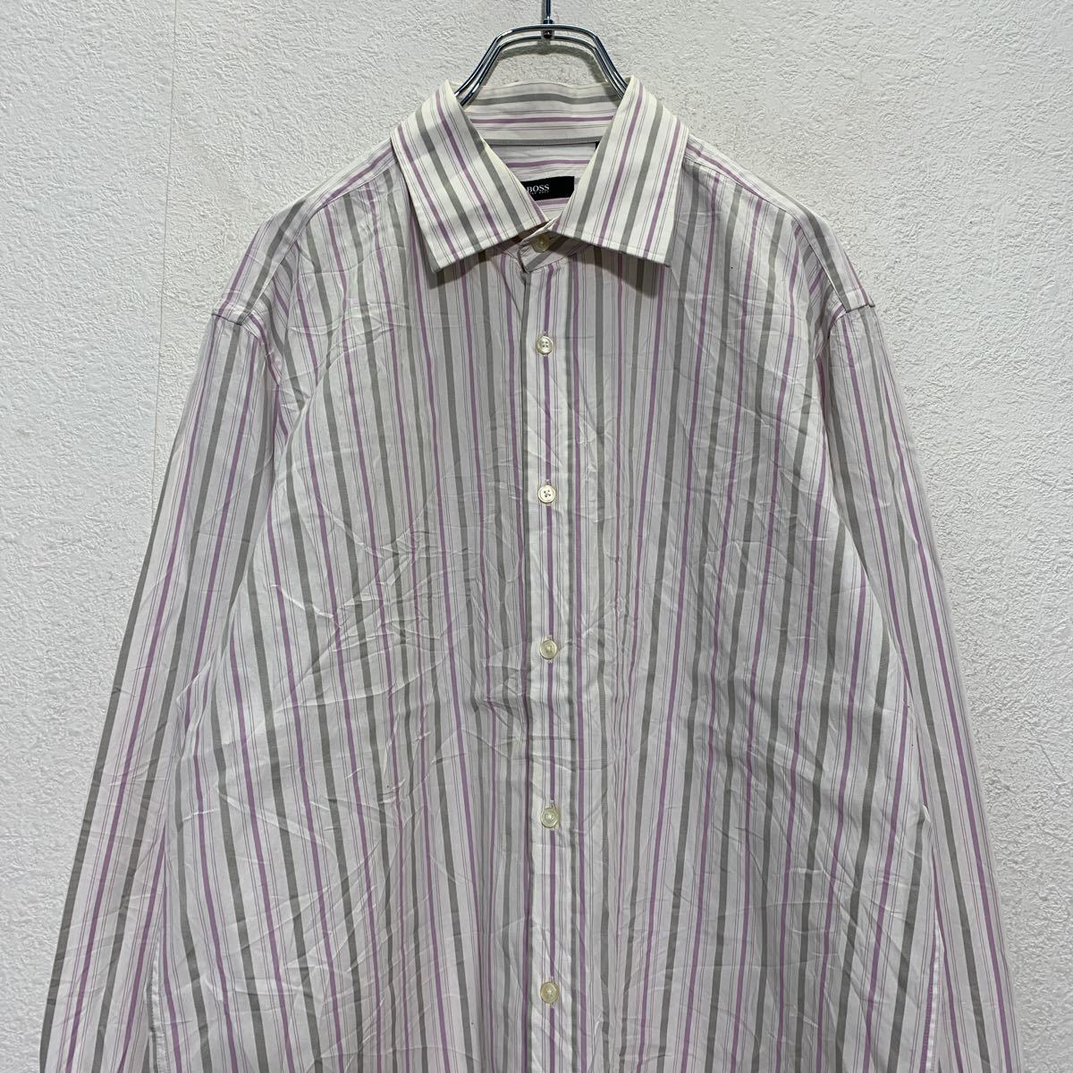 BOSS 長袖 ストライプシャツ 44 17 1/2 XL〜 ホワイト パープル グレー コットン 古着卸 アメリカ仕入 a602-6090