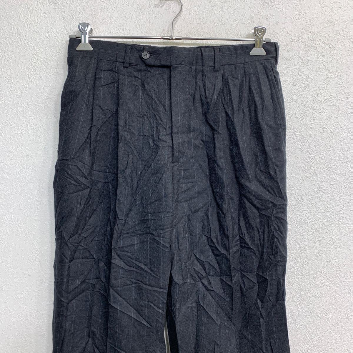 スラックス W32 ストライプ ブラック ダークネイビー 古着卸 アメリカ仕入 2403-166