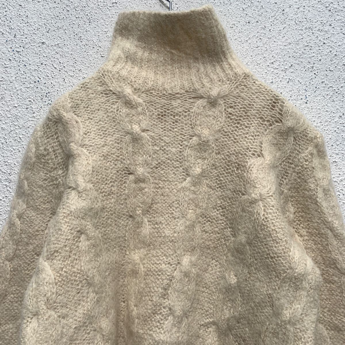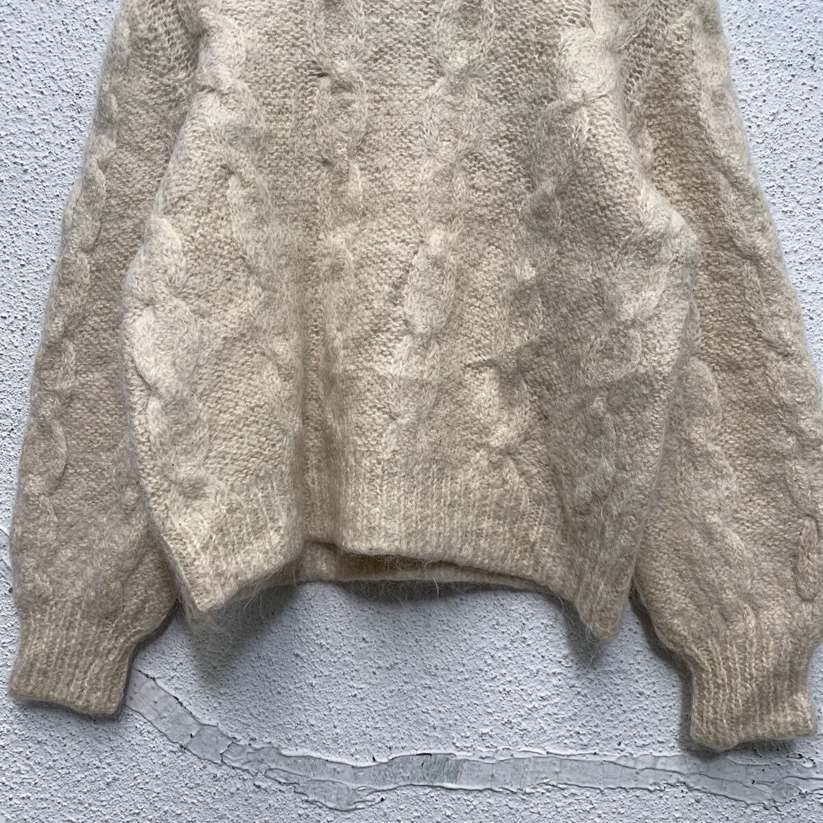 ハイネック ケーブルニット セーター L〜 レディース アイボリー ハンドメイド ネックボタン 古着卸 アメリカ仕入 a603-5788