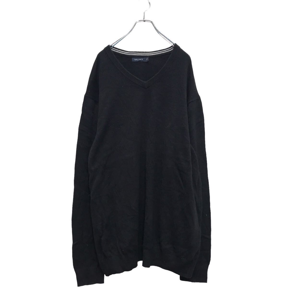 NAUTICA コットン ニット セーター 2XL ブラック ノーティカ ビッグサイズ Vネック ロゴ 古着卸 アメリカ仕入 a603-5880