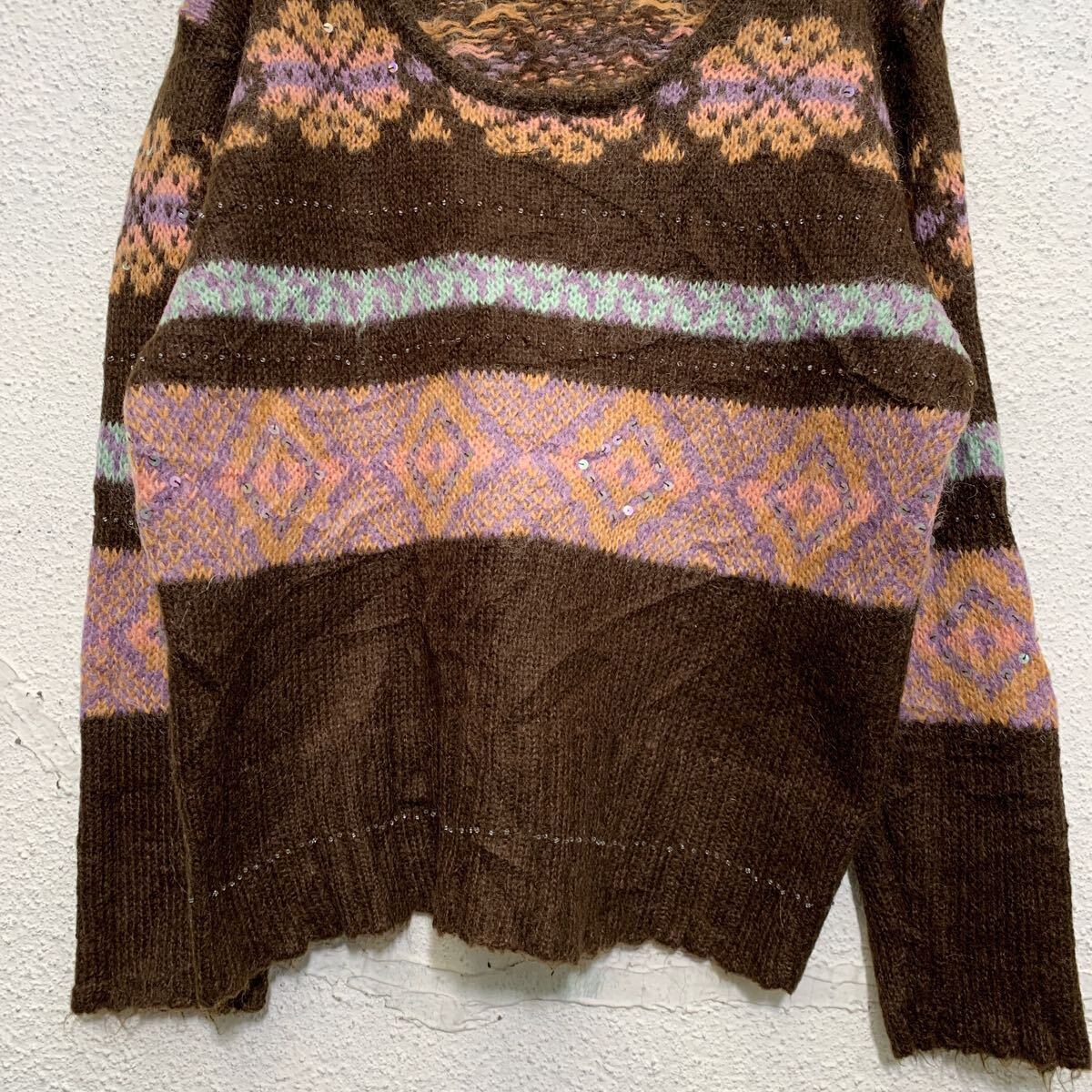 GIORGIO モヘア ウール混紡 ニット セーター 42 L〜 レディース ブラウン オレンジ ビジュー スパンコール 古着卸 アメリカ仕入 a603-6067
