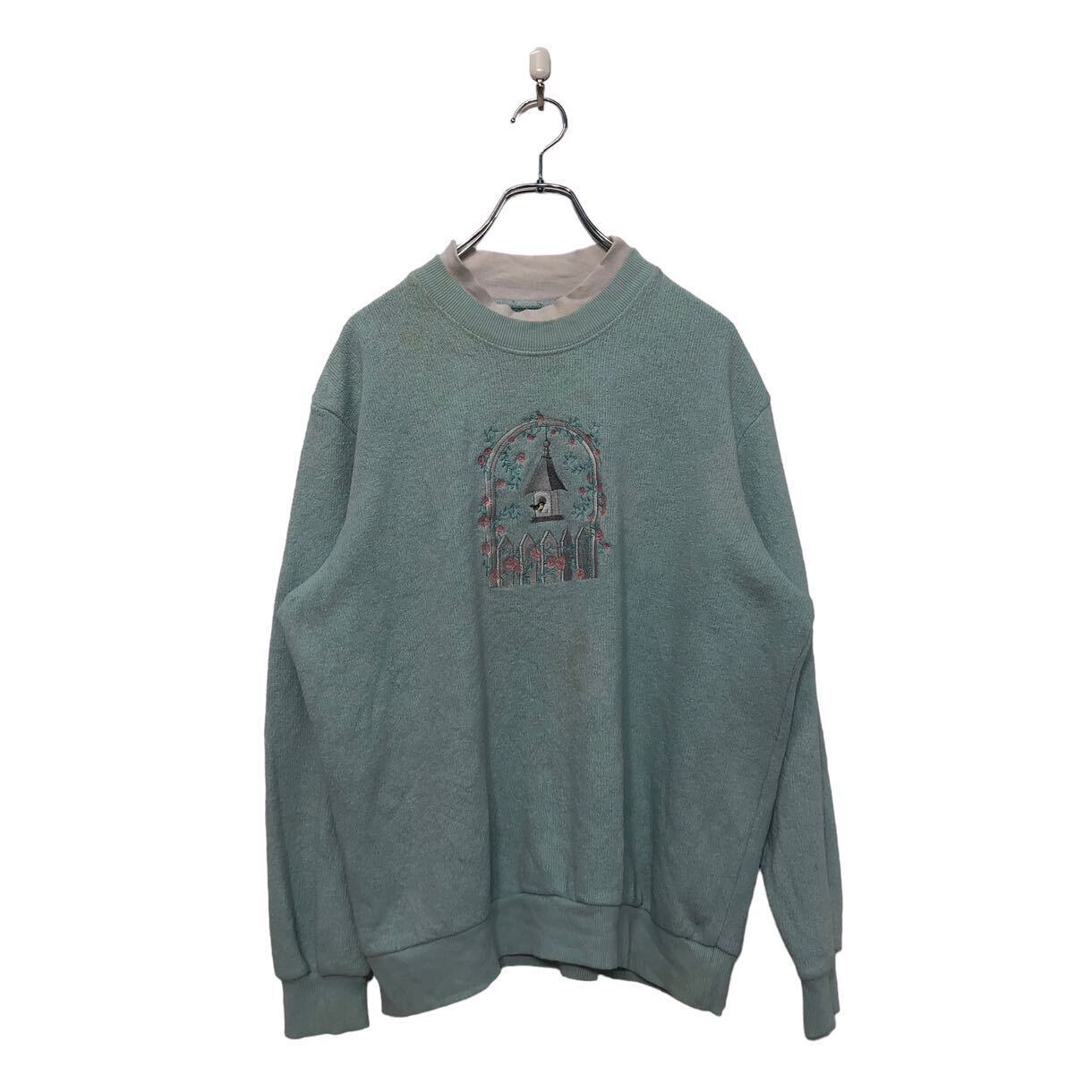 ロゴ スウェット トレーナー M~ レディース ミントグリーン 刺繍 アニマル 鳥 薔薇 裏起毛 古着卸 アメリカ仕入 a603-6109