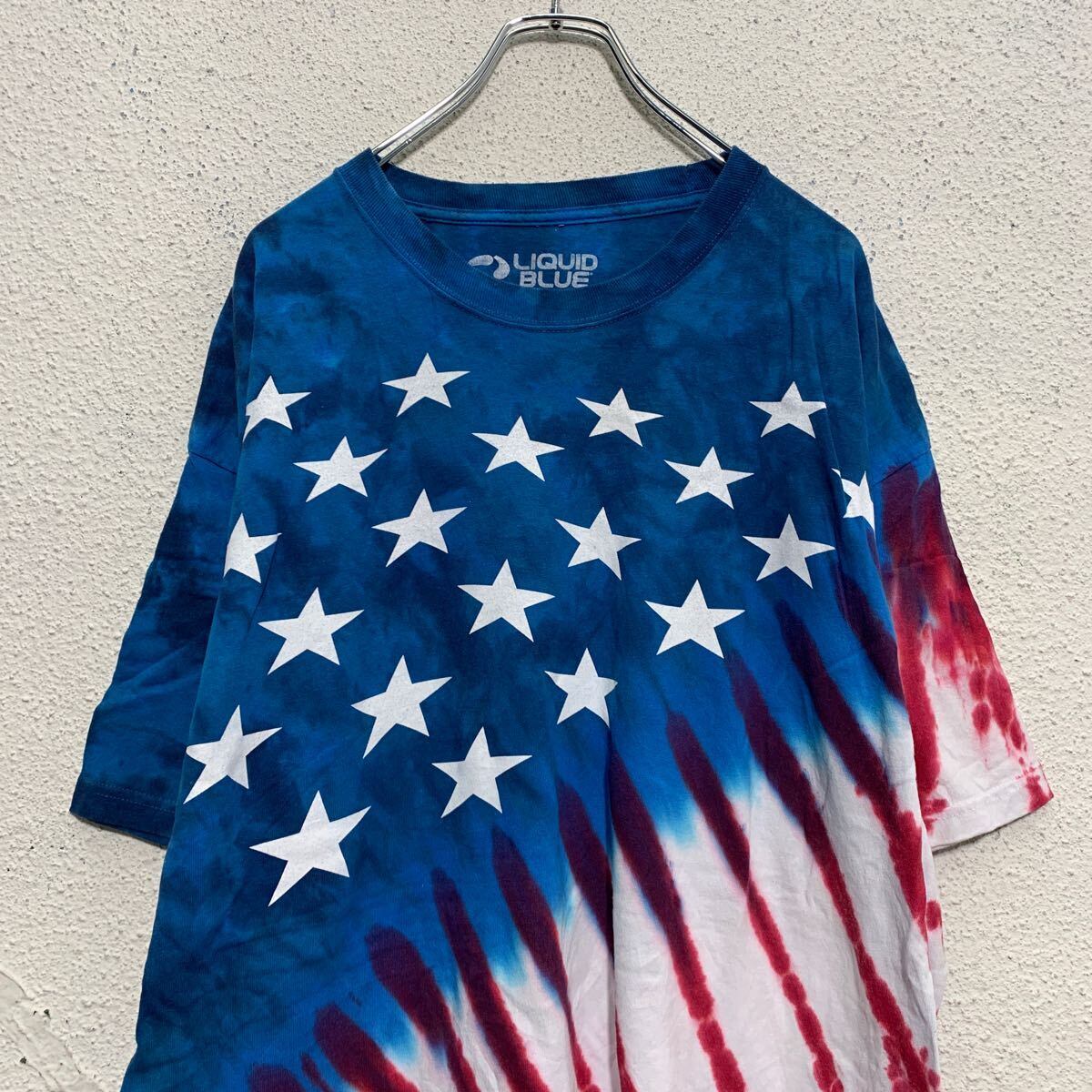 LIQUID BLUE 半袖 タイダイTシャツ 2XL ブルー レッド ホワイト リキッドブルー メキシコ製 星条旗 古着卸 アメリカ仕入 a604-5308