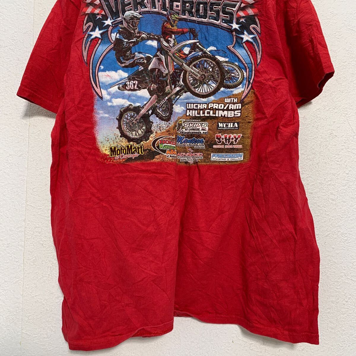 PORT and COMPANY 半袖 プリントTシャツ L レッド ブルー クルーネック バックプリント モトクロス 古着卸 アメリカ仕入 a604-5506