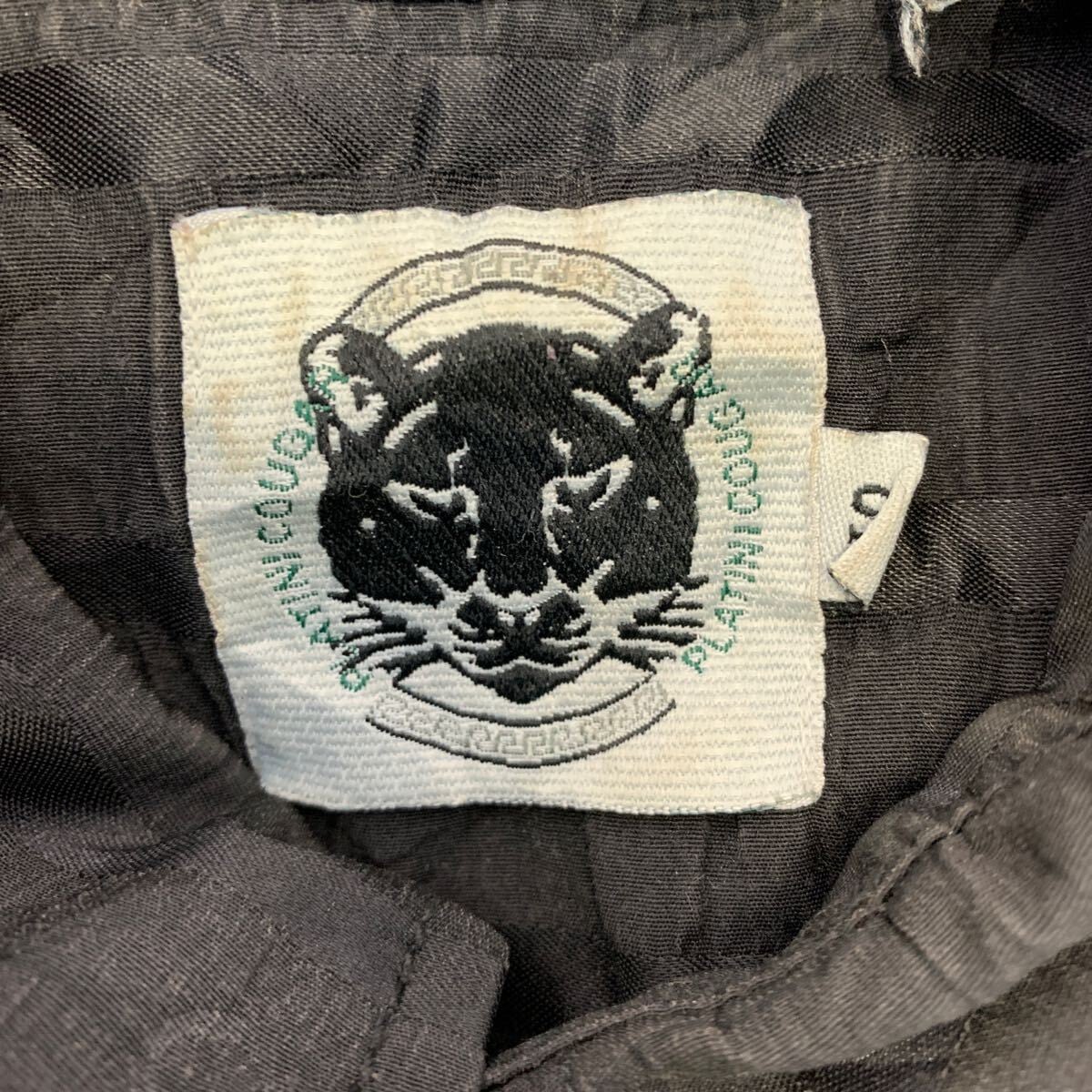 PLATINICOUGAR 長袖 柄シャツ S ブラック シルバー 刺繍 花柄 ラインストーン スナップボタン ストライプ 古着卸 アメリカ仕入 a604-5656
