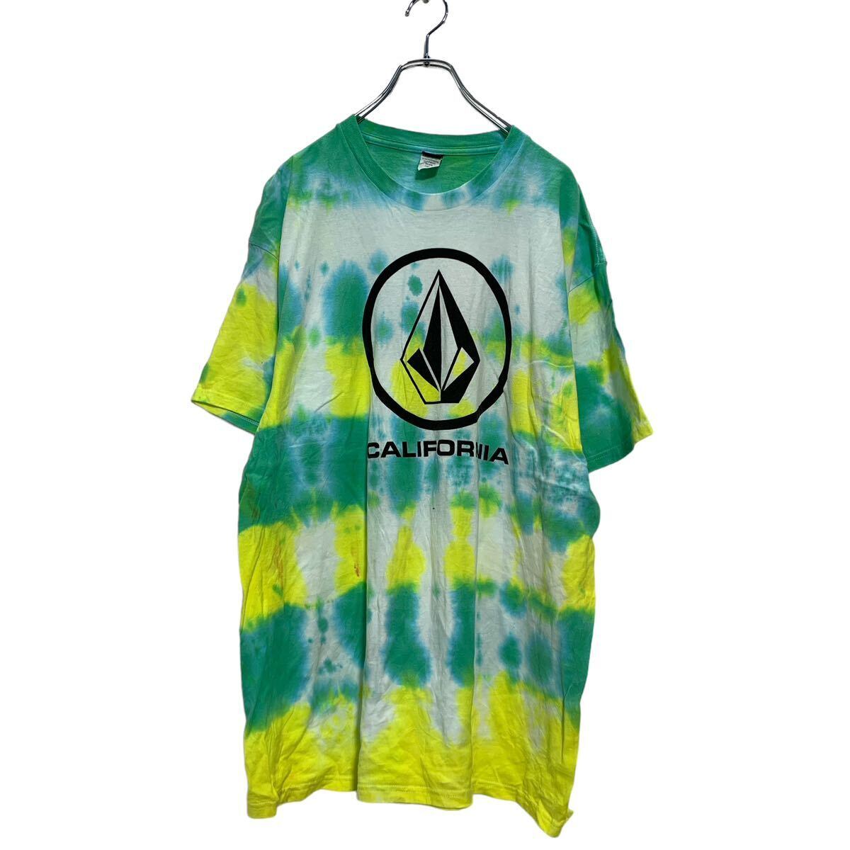 VOLCOM 半袖 タイダイTシャツ XL グリーン イエロー ホワイト ヴォルコム メキシコ製 ビッグサイズ ロゴ 古着卸 アメリカ仕入 a604-5730