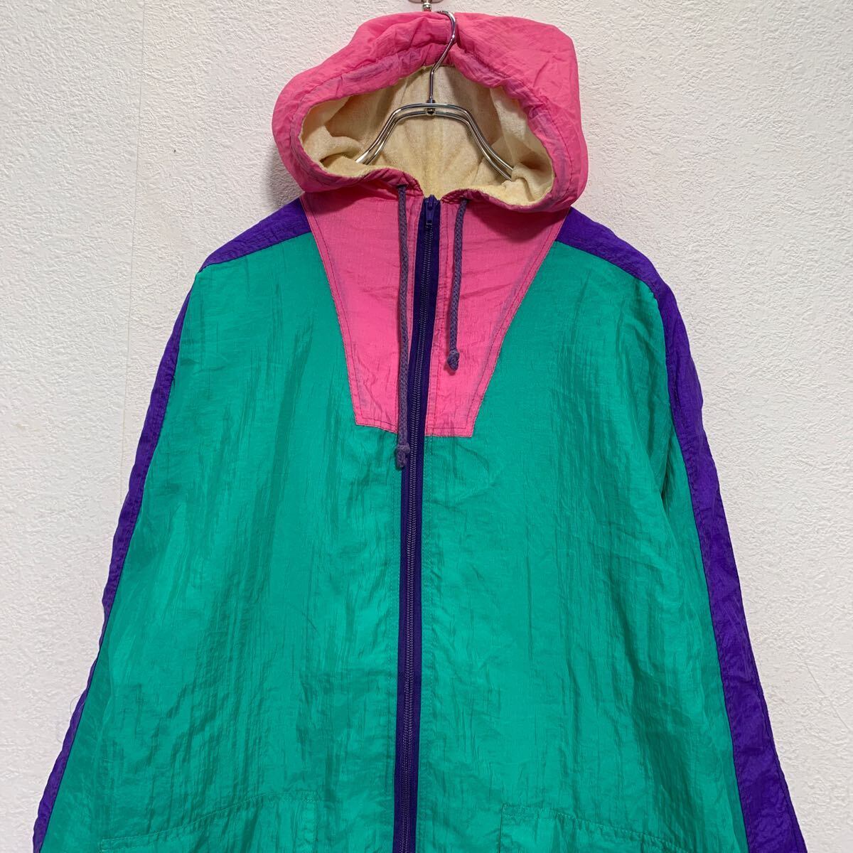 ジップアップ ナイロンジャケット L〜 レディース グリーン ピンク パープル 切替 ポリエステル 裏パイル 古着卸 アメリカ仕入 a604-5951