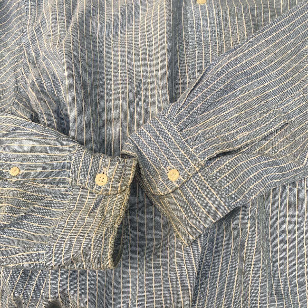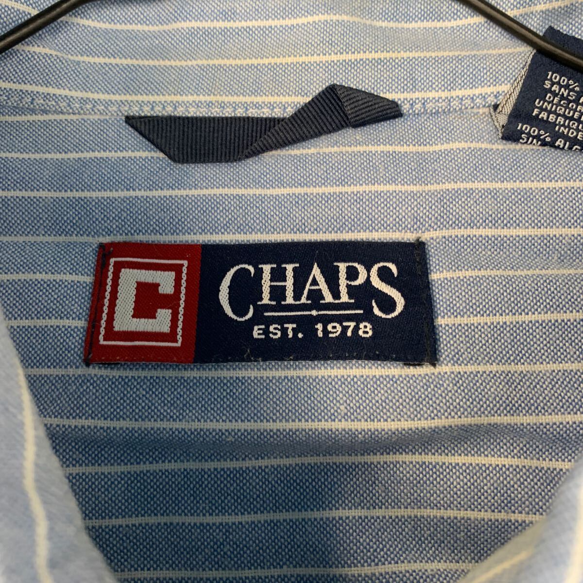CHAPS 長袖 ストライプシャツ 2XL ライトブルー ホワイト チャップス ビッグサイズ ボタンダウン 刺繍ロゴ 古着卸 アメリカ仕入 a604-6117