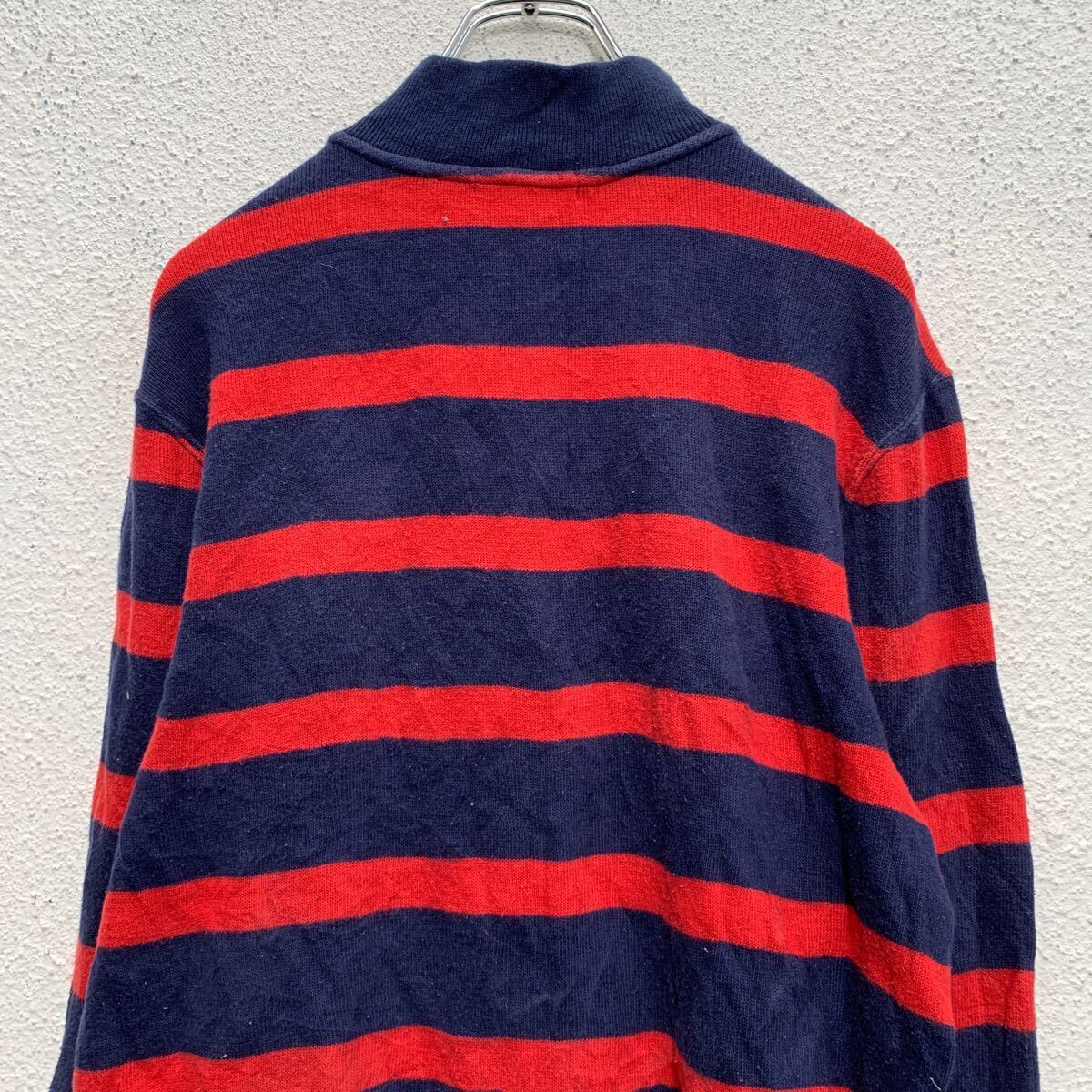 POLO RALPH LAUREN コットン ハーフジップ ニット セーター XL ネイビー レッド ポロラルフローレン 90's 古着卸 アメリカ仕入 a604-6215
