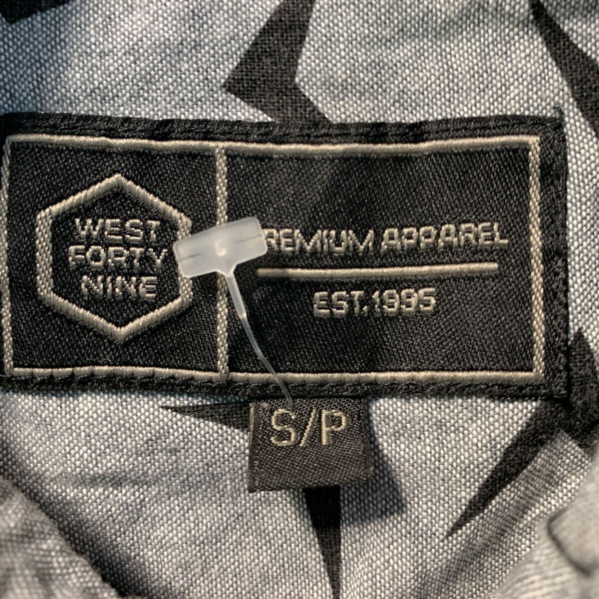 WEST FORTY NINE 半袖 柄シャツ S グレー ブラック 総柄 胸ポケット 古着卸 アメリカ仕入 a604-6310
