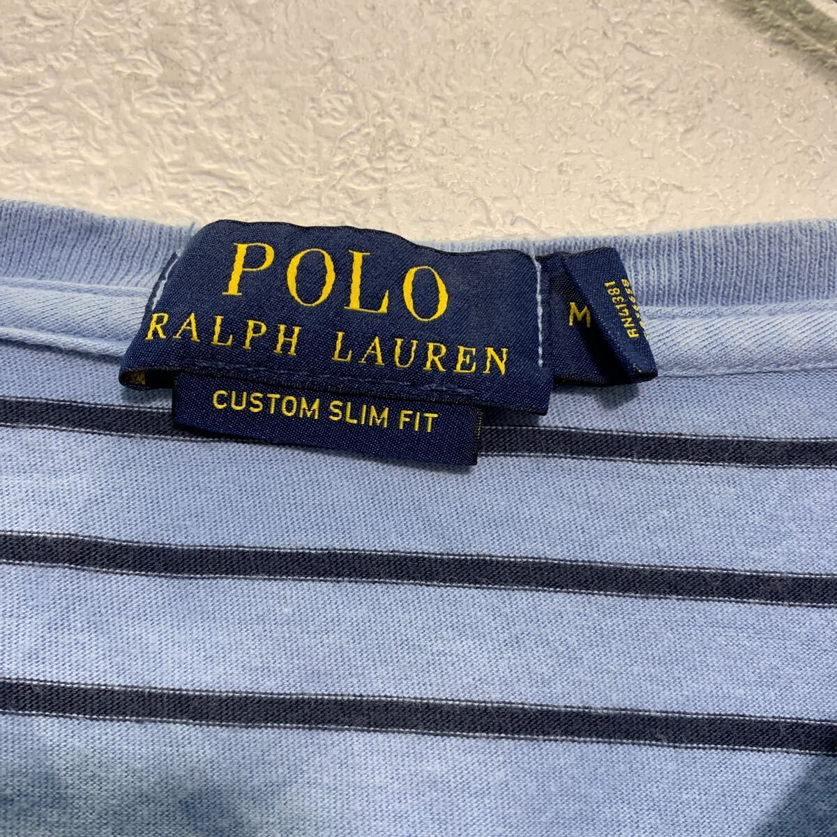 POLO RALPH LAUREN 半袖 ロゴTシャツ M ライトブルー ネイビー ポロラルフローレン ボーダー 古着卸 アメリカ仕入 a604-6959