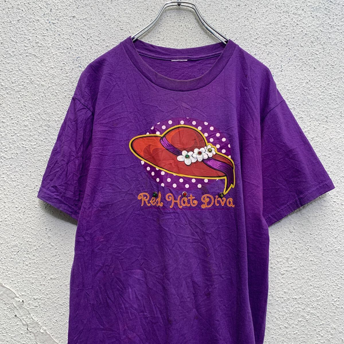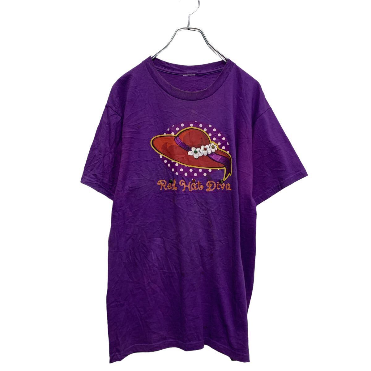 半袖 プリントTシャツ L〜 レディース パープル クルーネック ライティング 古着卸 アメリカ仕入 a605-5398
