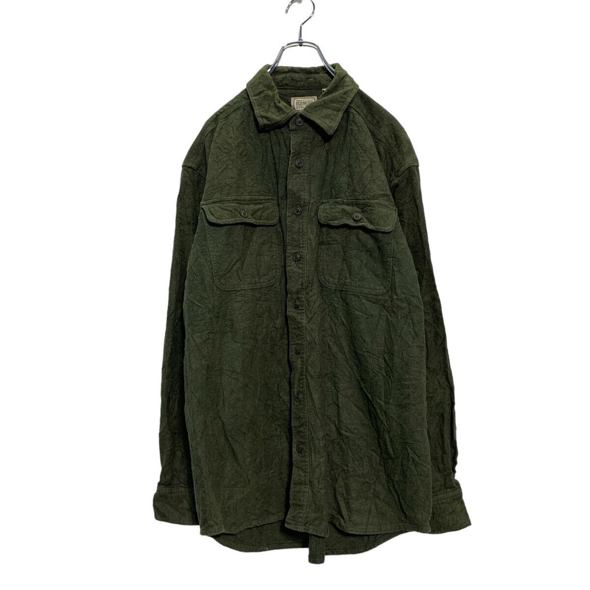 SCHMIDT 長袖 無地 ネル ワークシャツ L シュミット モスグリーン ダブルポケット 古着卸 アメリカ仕入 a605-6716