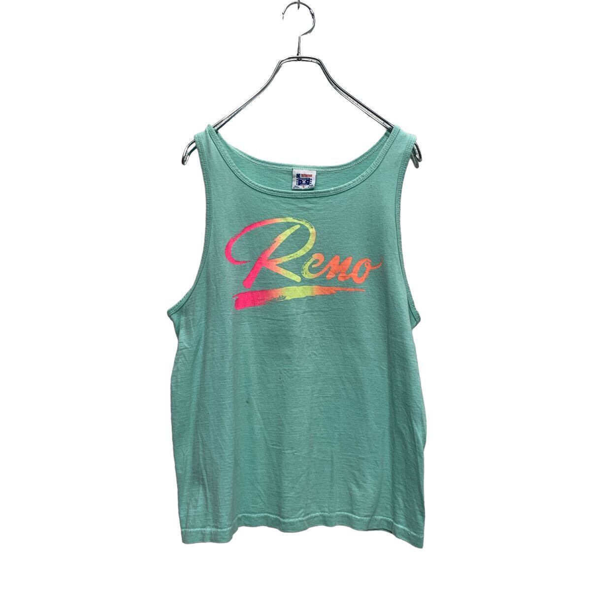 AMERICAS FINEST プリント タンクトップ S レディース ミントグリーン USA製 ネオンカラー ノースリーブ 古着卸 アメリカ仕入 a605-6930