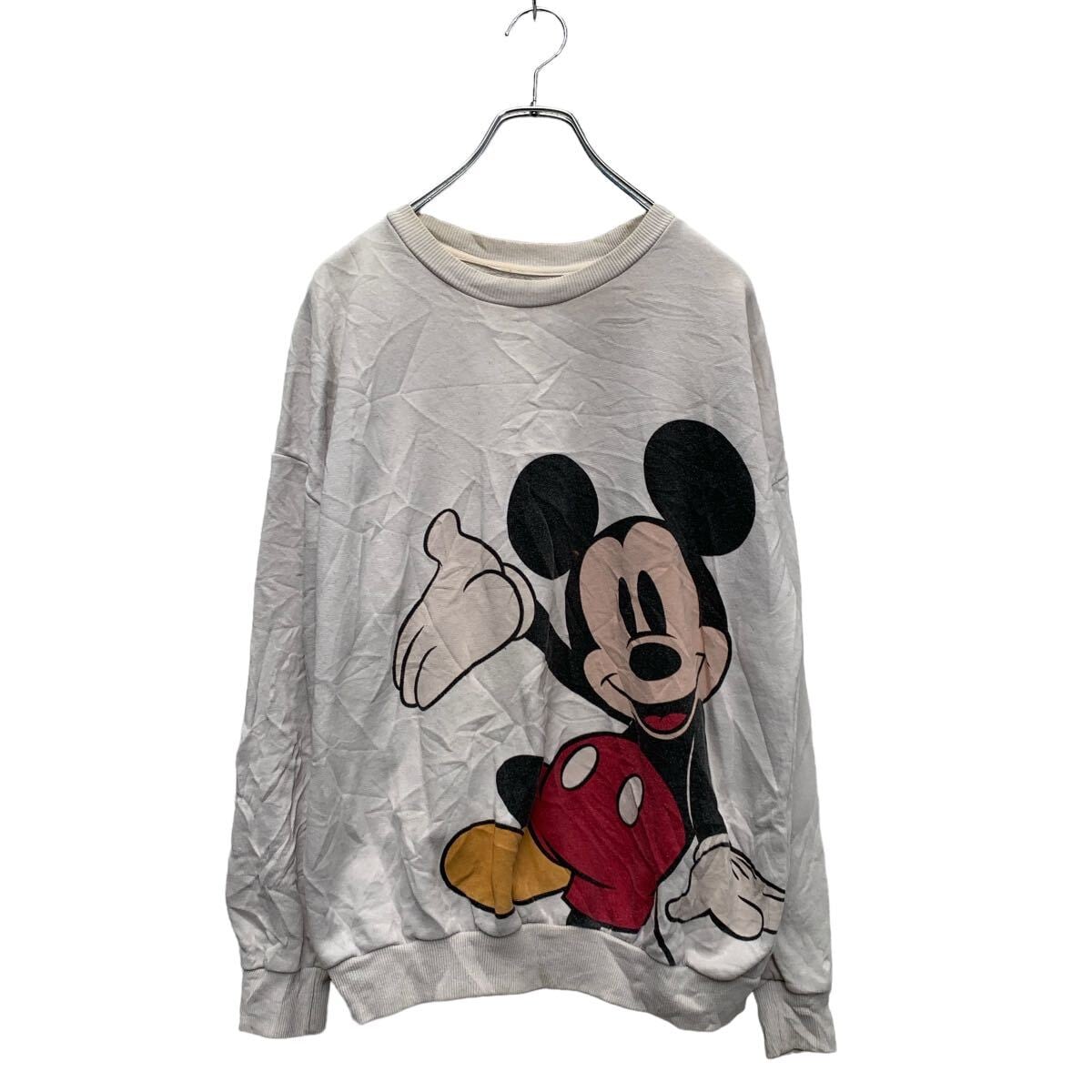Bershka Disney キャラクター プリントスウェット トレーナー L レディース ホワイト 裏パイル ミッキー 古着卸 アメリカ仕入 a605-7115