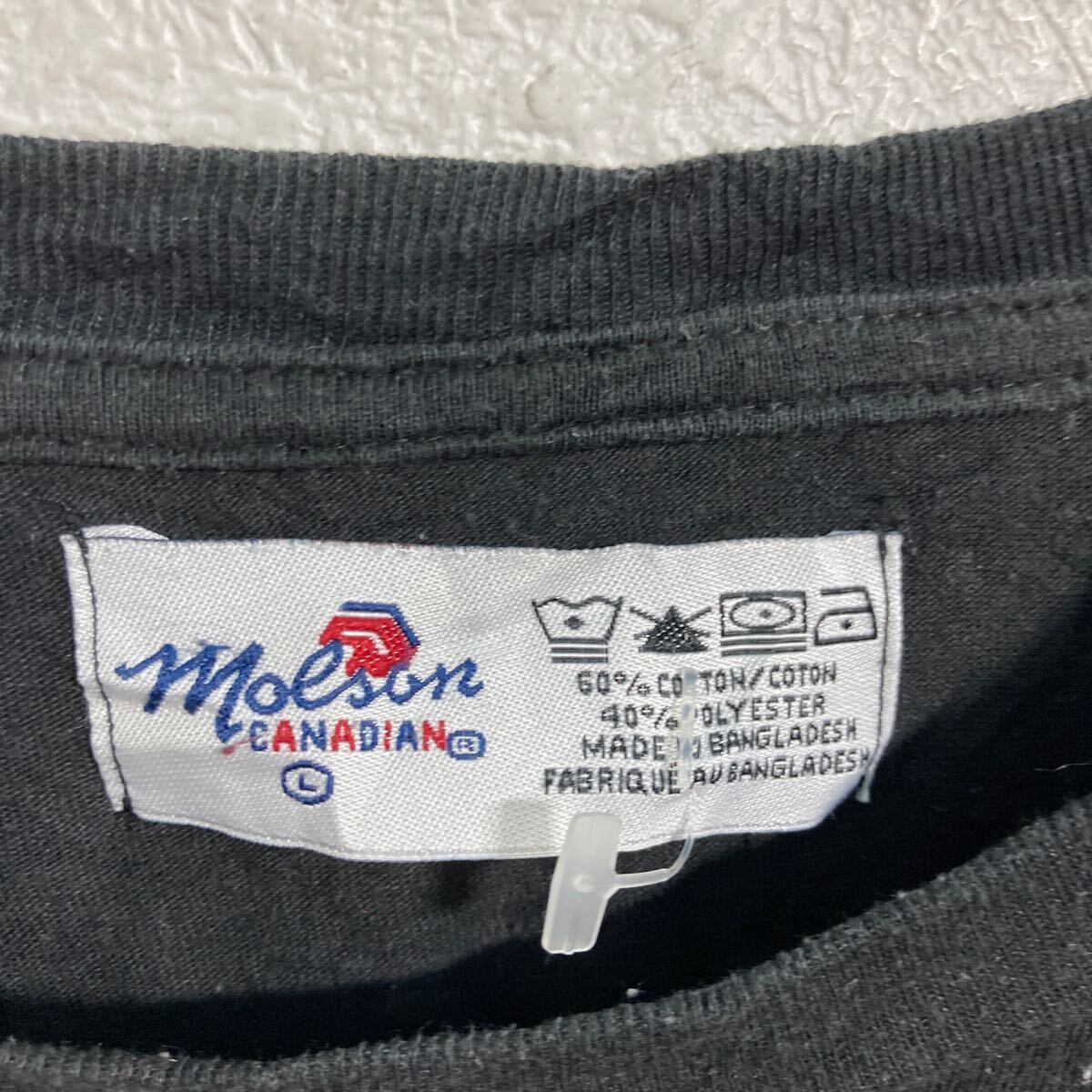 Molson 半袖 プリント Tシャツ L ブラック ホッケー クルーネック 古着卸 アメリカ仕入 a605-7183