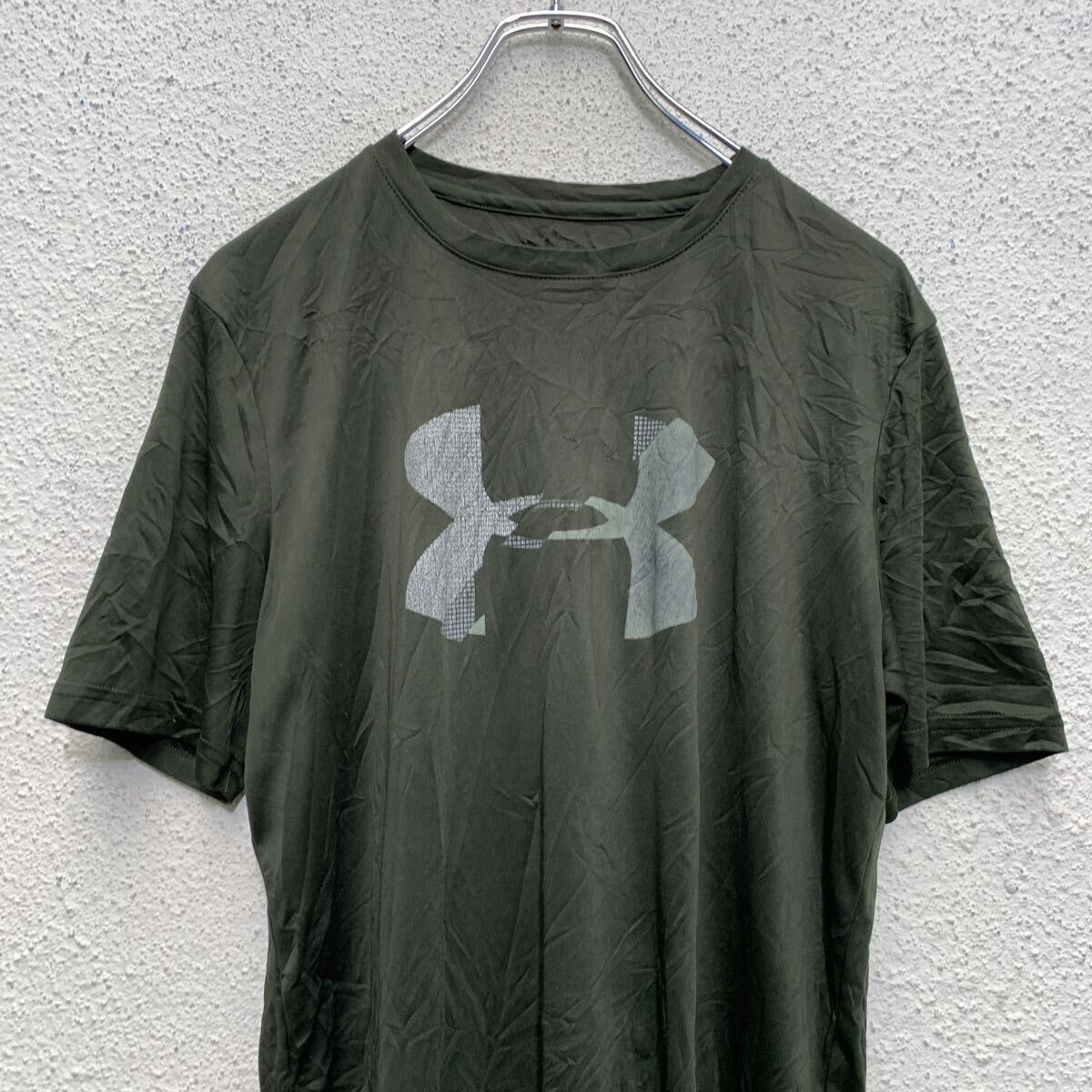 UNDER ARMOUR 半袖 ロゴTシャツ M〜 オリーブ アンダーアーマー クルーネック スポーツウェア 古着卸 アメリカ仕入 a605-7272