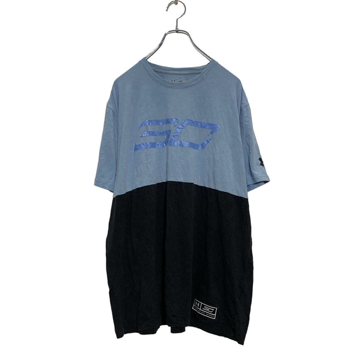 UNDER ARMOUR 半袖 プリントTシャツ XL ライトブルー ブラック 切替 アンダーアーマー ビッグサイズ 古着卸 アメリカ仕入 a605-7459