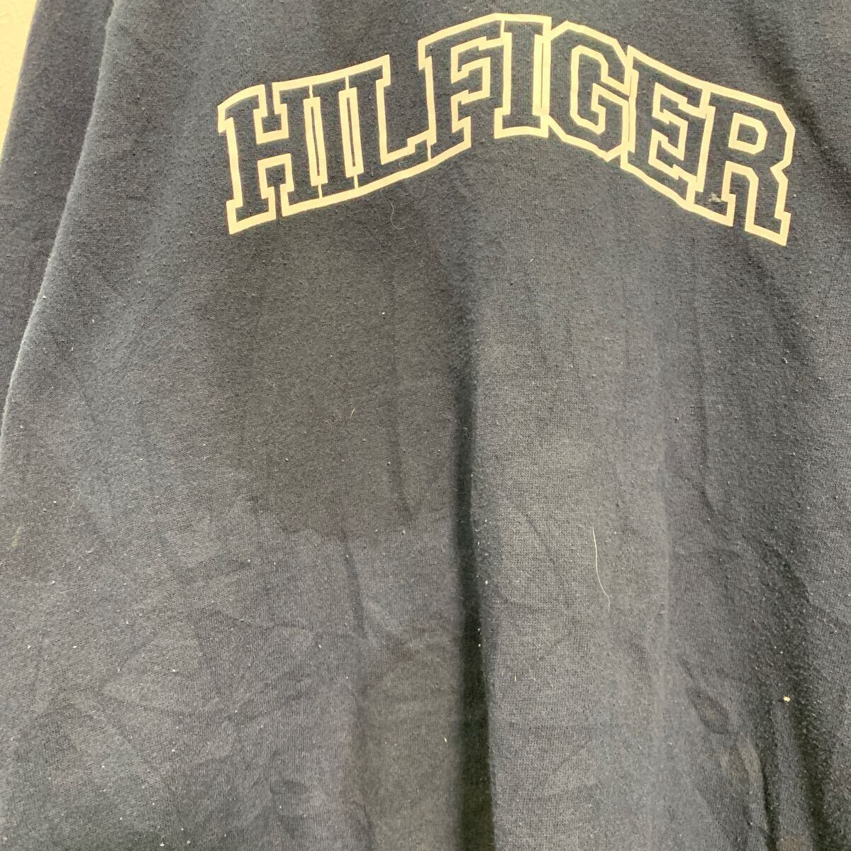 TOMMY HILFIGER プリントスウェット トレーナー XL ネイビー トミーヒルフィガー ビッグサイズ 裏起毛 古着卸 アメリカ仕入 a605-7524