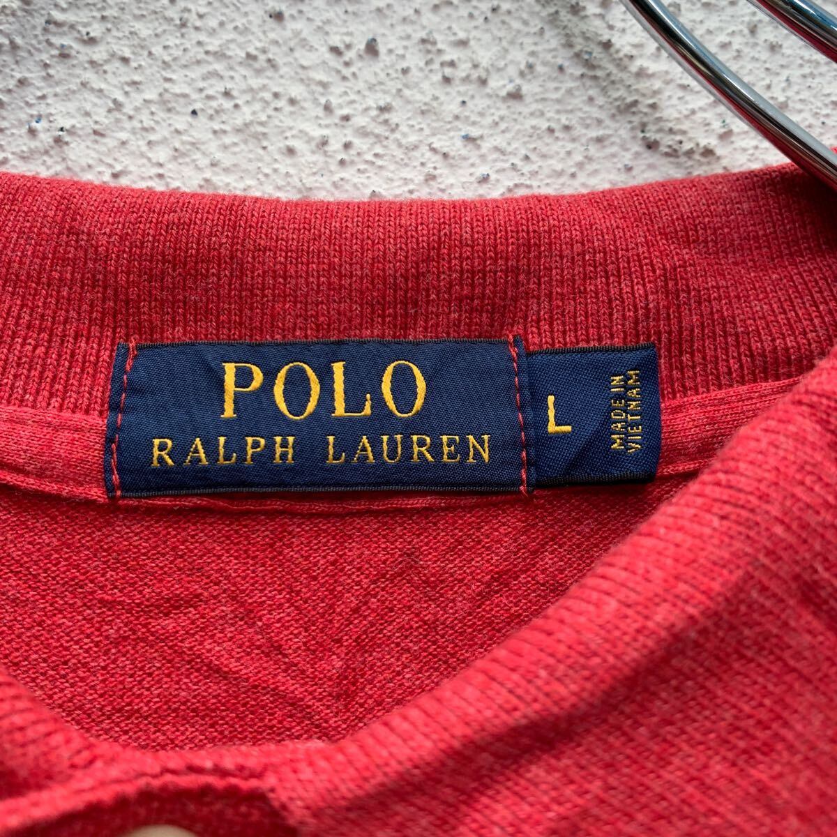 POLO RALPH LAUREN 長袖 無地 ポロシャツ L レッド ポロラルフローレン ワンポイントロゴ 鹿子 古着卸 アメリカ仕入 a605-7971