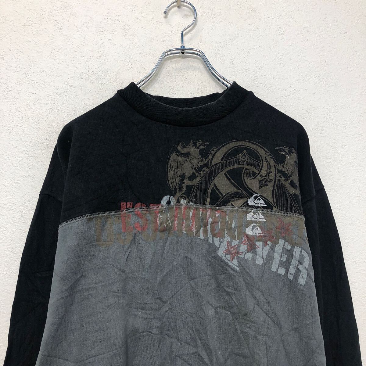 Quiksilver プリント スウェット トレーナークイックシルバー XL ブラック ビッグサイズ 古着卸 アメリカ仕入 a605-8112