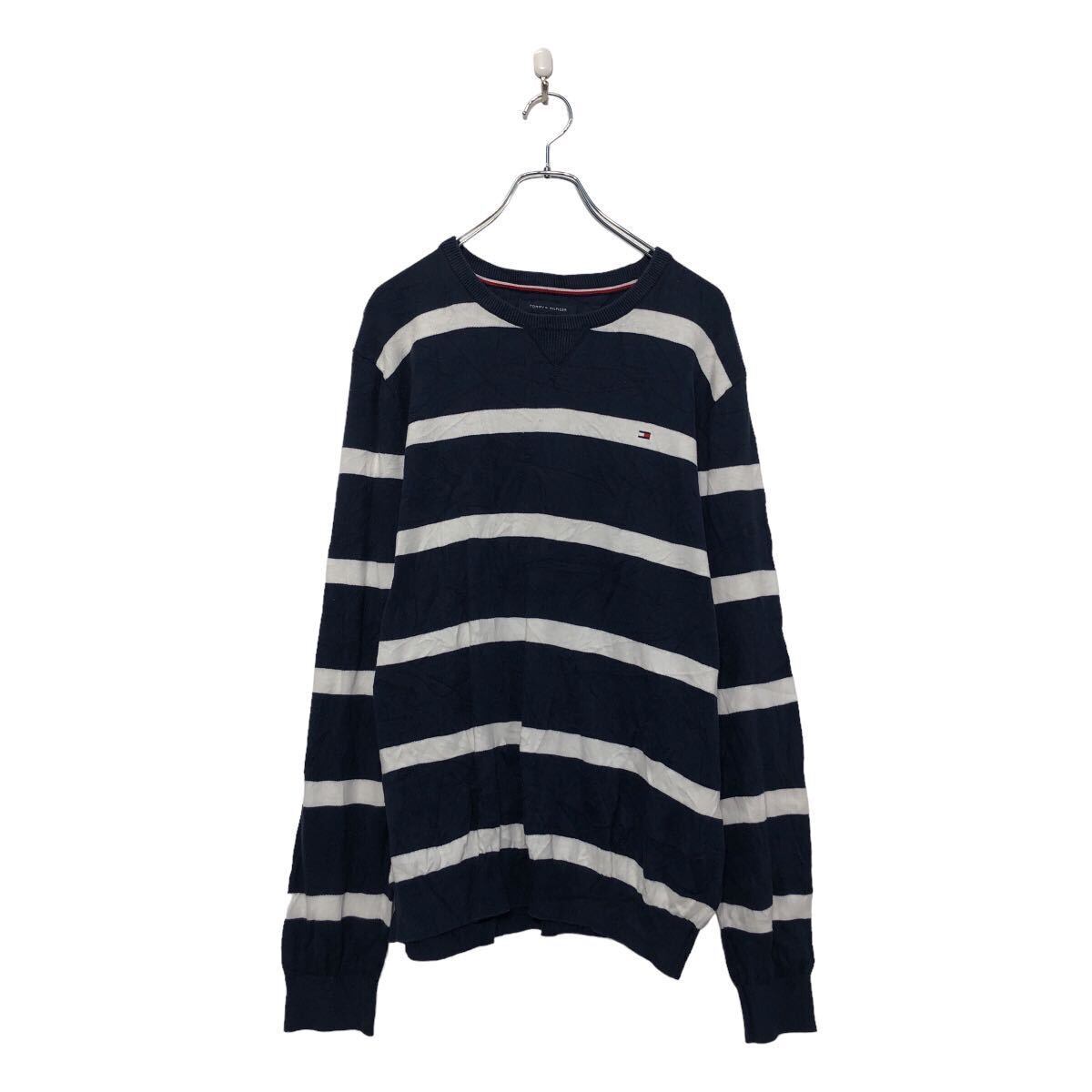 TOMMY HILFIGER コットン ニット セーター トミーヒルフィガー L ネイビー ボーダー 古着卸 アメリカ仕入 a605-8252