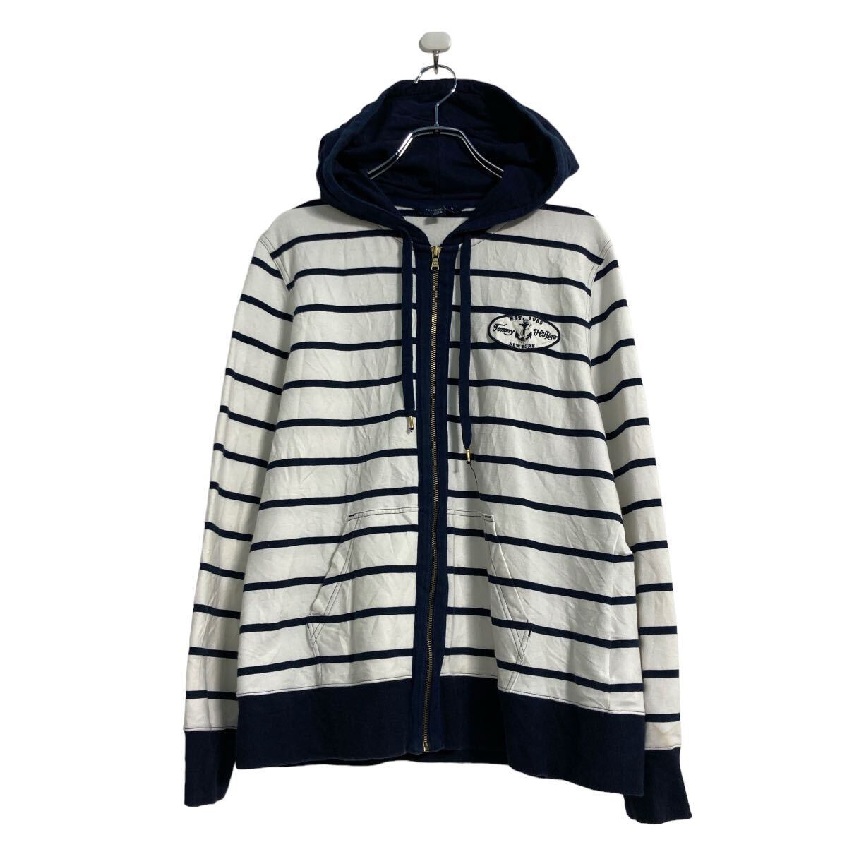 TOMMY HILFIGER プリント スウェット パーカー XL ホワイト ネイビー ボーダー トミーヒルフィガー 古着卸 アメリカ仕入 a605-8415