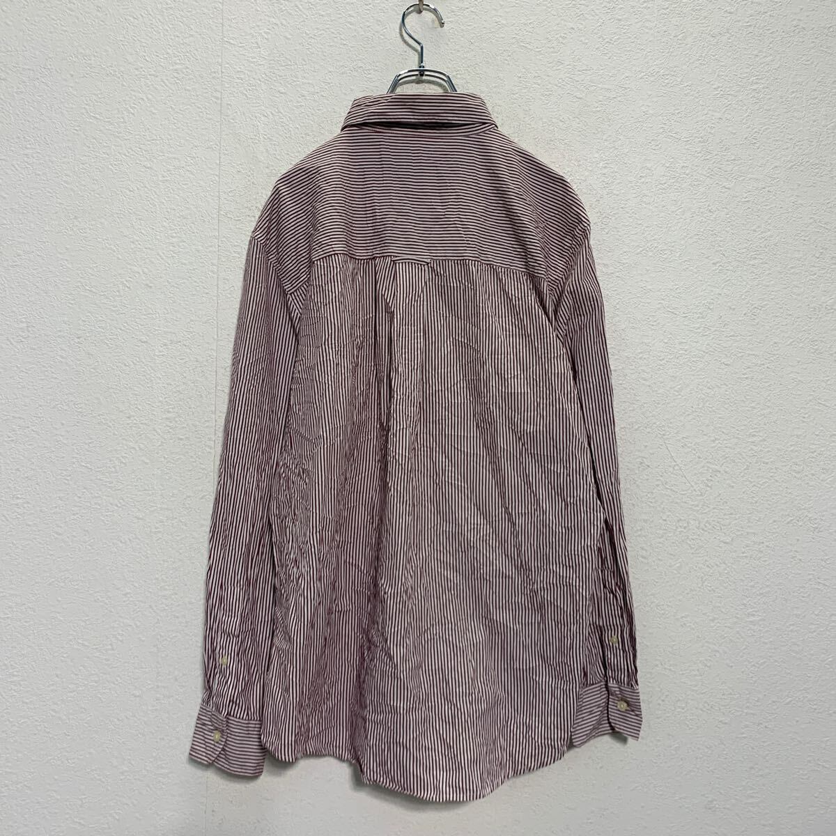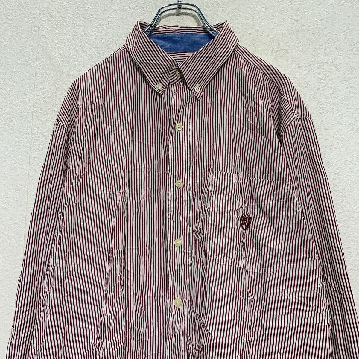 CHAPS 長袖 ストライプシャツ L バーガンディ ホワイト チャップス ボタンダウン 古着卸 アメリカ仕入 a605-8431