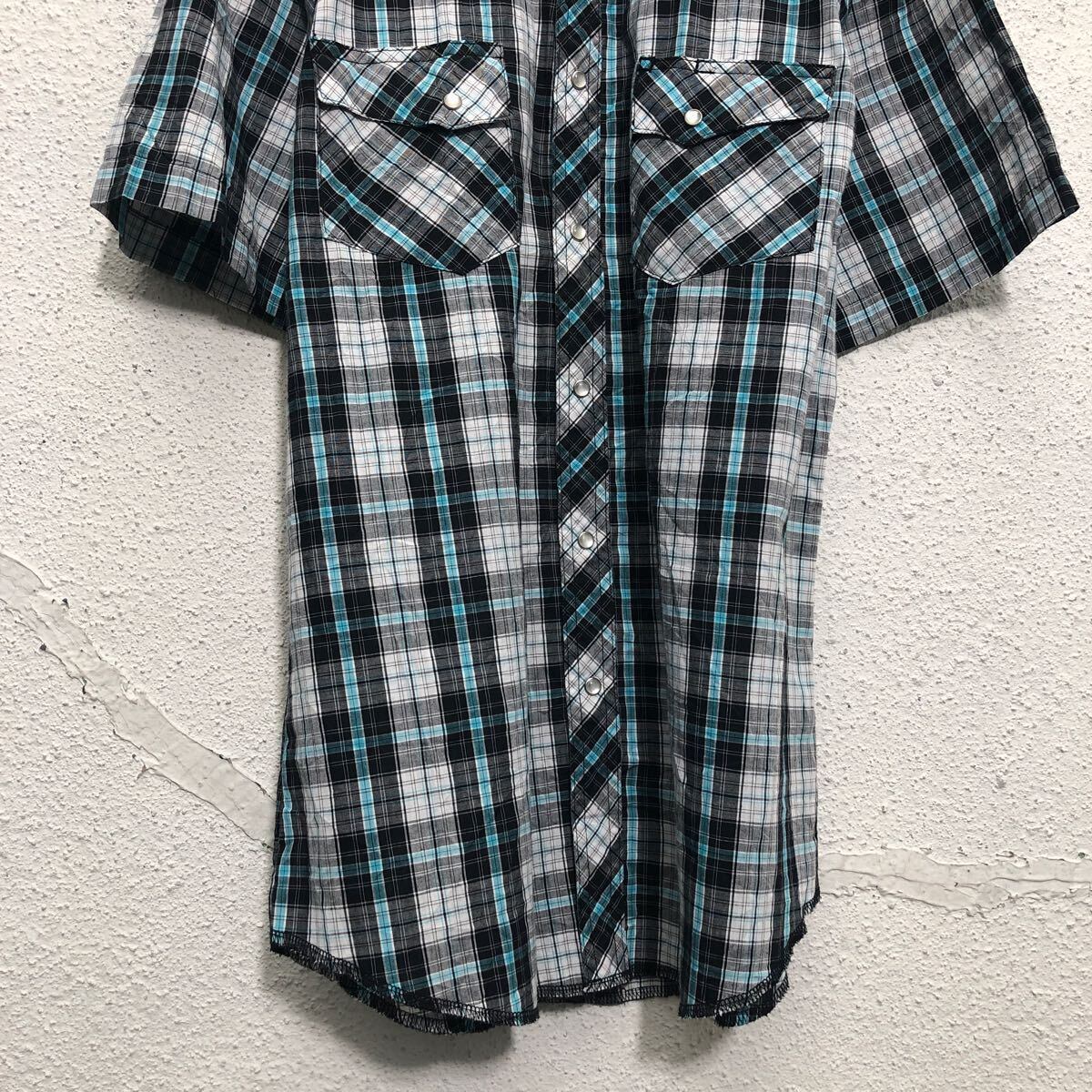 Wrangler 半袖 チェックシャツ M ブルー ラングラー ポケット 古着卸 アメリカ仕入 a605-8626