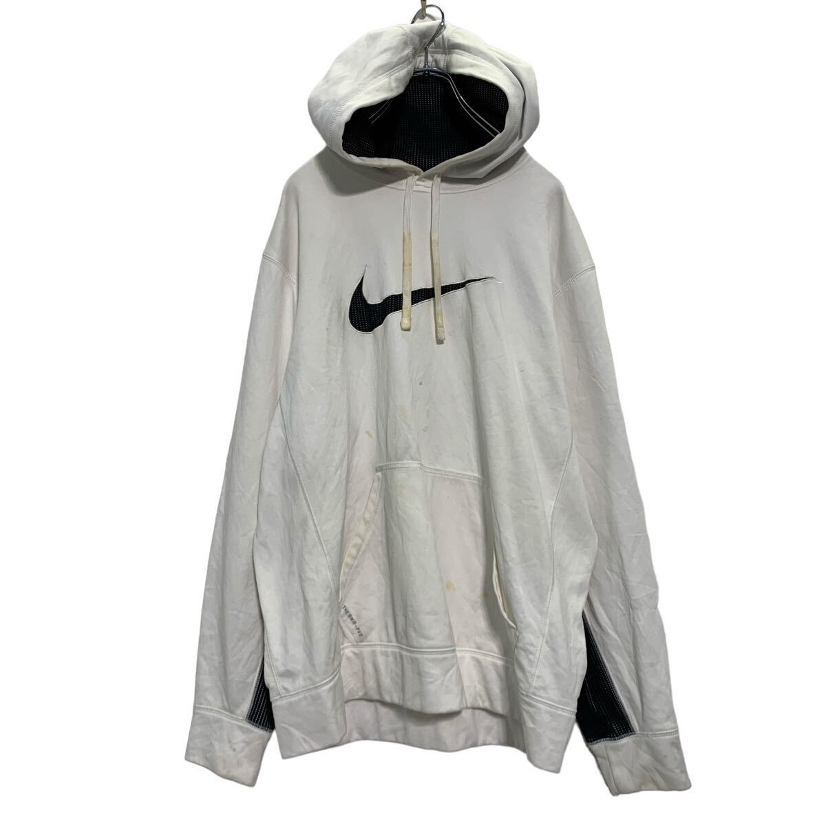 NIKE ロゴスウェット パーカー L ホワイト ナイキ ジャージ 裏起毛 プルオーバー 古着卸 アメリカ仕入 a605-8631