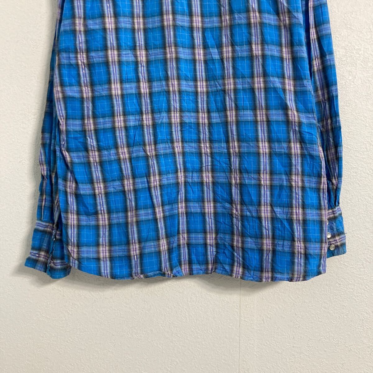 Wrangler 長袖 チェックシャツ XL ブルー パープル ホワイト ラングラー ビッグサイズ ウエスタン 古着卸 アメリカ仕入 a606-5325