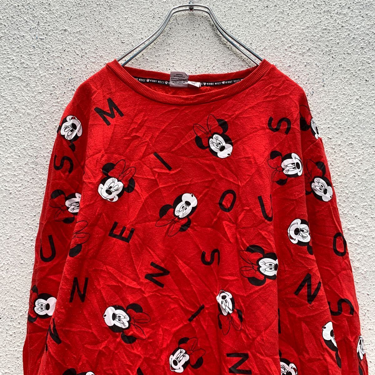 Disney キャラクター プリントスウェット トレーナー XL 160〜 キッズ レッド 裏起毛 ミニー 古着卸 アメリカ仕入 a606-5487