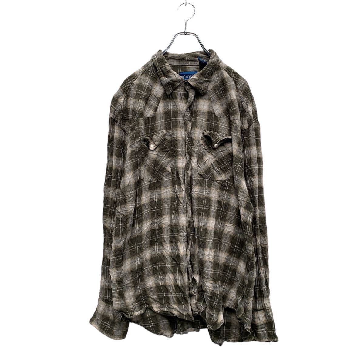 Wrangler 長袖 チェック ウエスタン シャツ 2XL モスグリーン ラングラー ビッグサイズ スナップボタン 古着卸 アメリカ仕入 a606-5734
