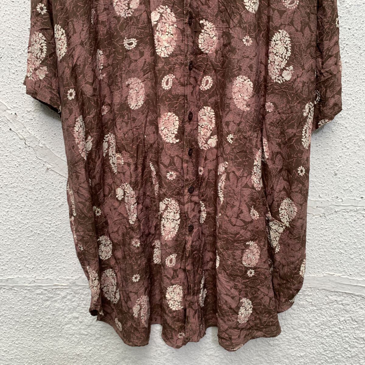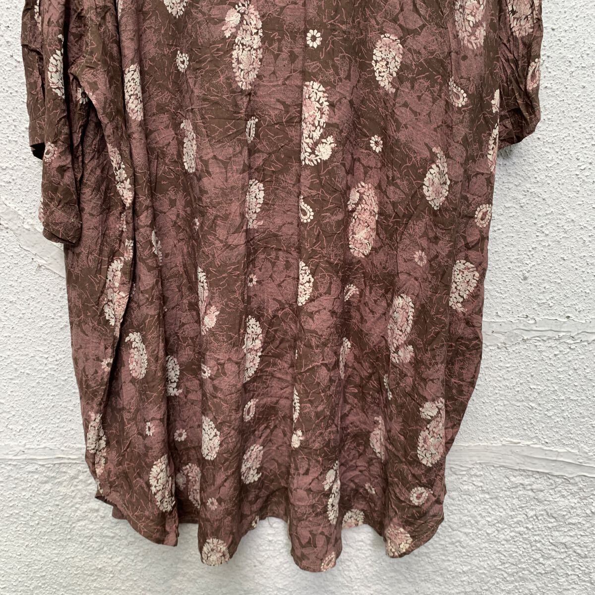 半袖 ペイズリー柄 ノーカラーシャツ 2XL〜 ブラウン 総柄 ビッグサイズ 襟なし 古着卸 アメリカ仕入 a606-5804