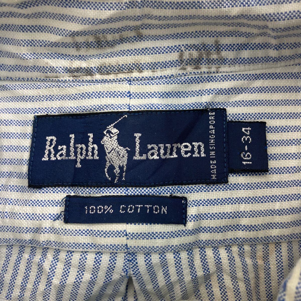 Ralph Lauren 長袖 ストライプシャツ L ブルー ホワイト ラルフローレン ボタンダウン 古着卸 アメリカ仕入 a606-6277