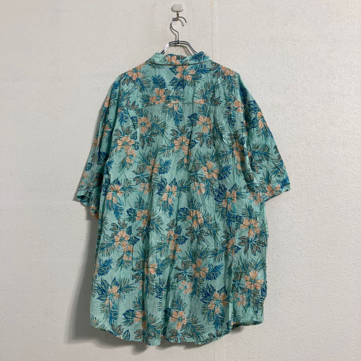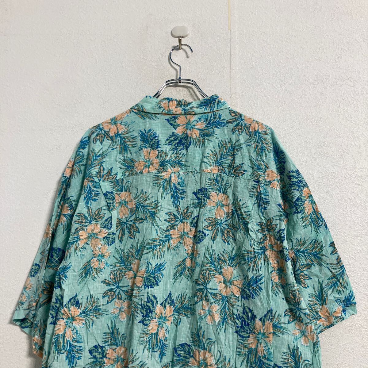 IZOD 半袖 アロハシャツ 3XL ライトブルー オレンジ ボタンダウン ハイビスカス ビッグサイズ 古着卸 アメリカ仕入 a606-6649
