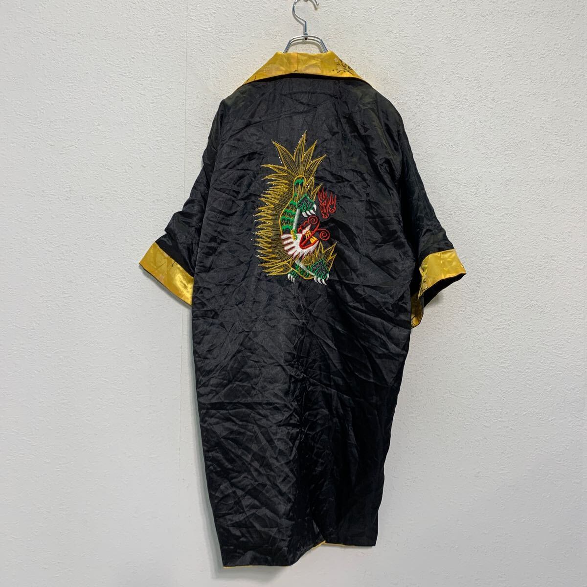 チャイナガウン M ブラック イエロー 羽織り バック刺繍 オリエンタル 古着卸 アメリカ仕入 a607-5010
