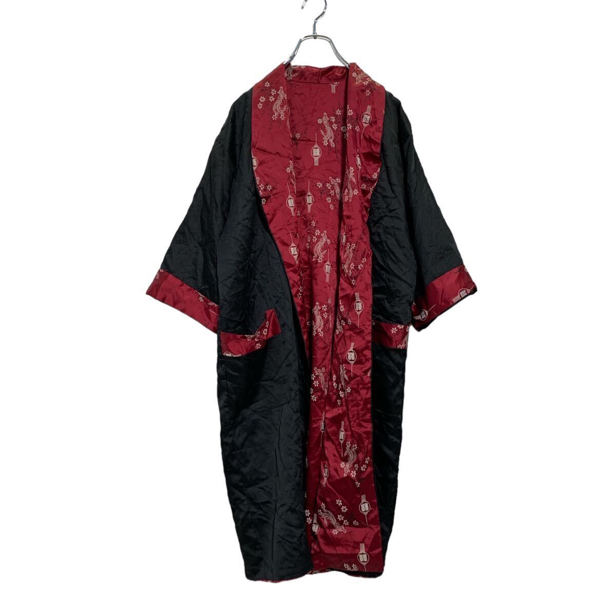 チャイナガウン M〜 ブラック バーガンディ 羽織り バック刺繍 ドラゴン オリエンタル 古着卸 アメリカ仕入 a607-5011