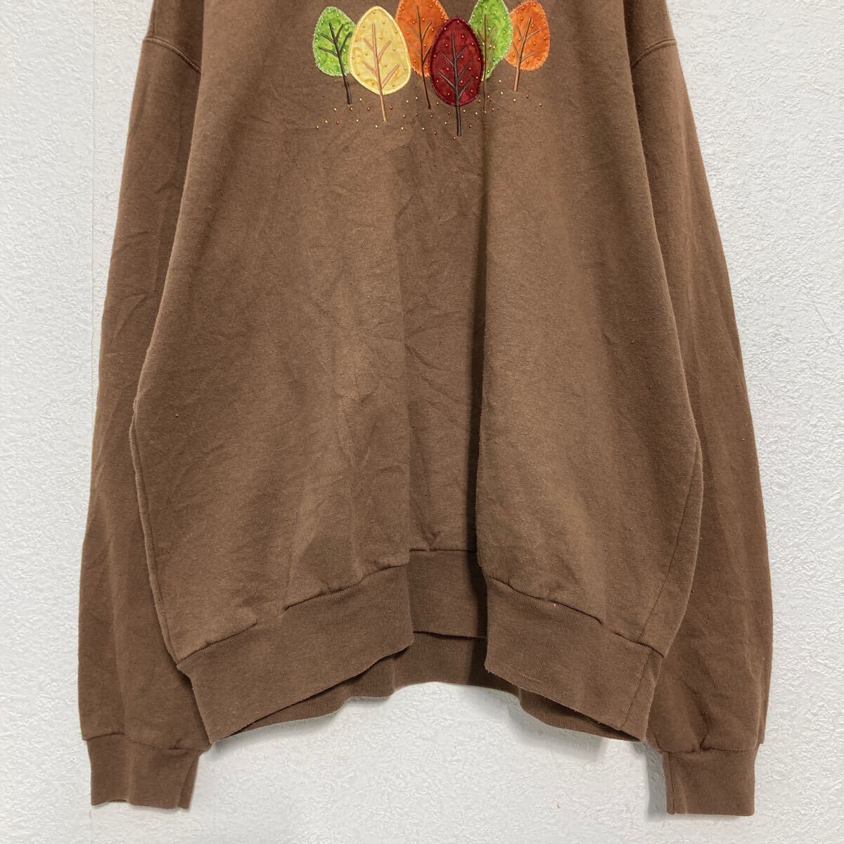 TOP STITCH ロゴスウェット トレーナー L〜 レディース ブラウン レイヤードネック 裏起毛 森林 古着卸 アメリカ仕入 a607-5036