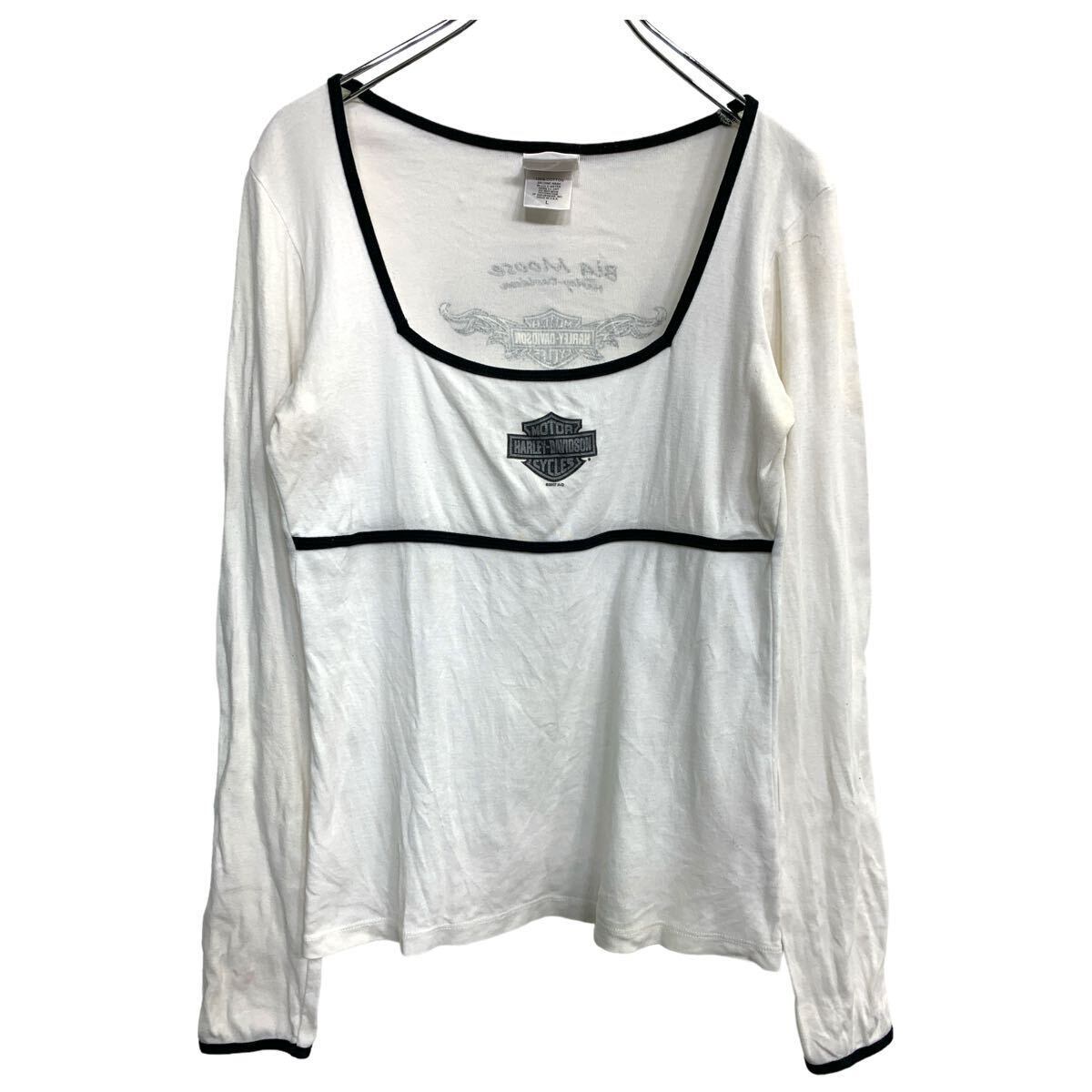 Harley-Davidson ロングTシャツ Lサイズ ハーレーダビッドソン レディース ホワイト USA製 古着卸 アメリカ仕入 t2407-3001