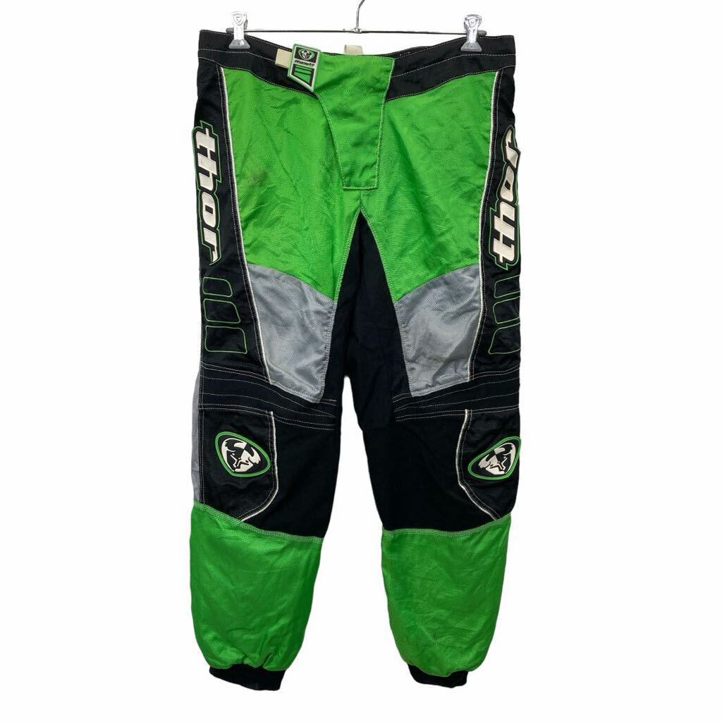 thor モトクロスパンツ W38 ソアー レーシングパンツ ビッグサイズ ブラック グリーン ナイロン 古着卸 アメリカ仕入 2407-59