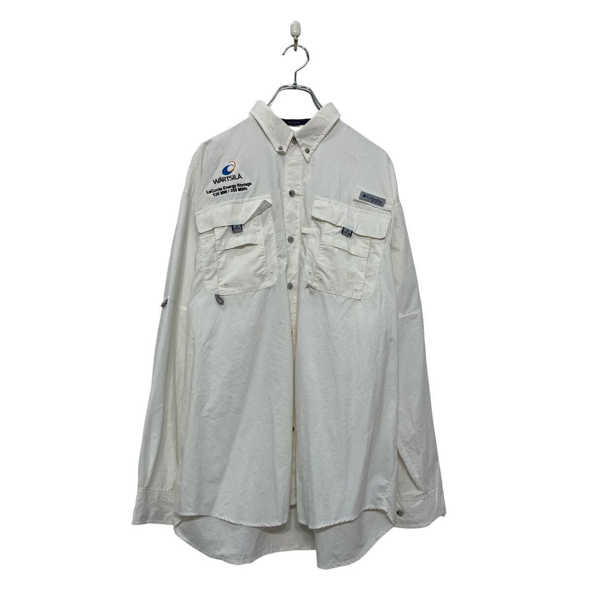 Columbia 長袖 柄 シャツ コロンビア L ホワイト PDF ポケット 古着卸 アメリカ仕入 a607-5605